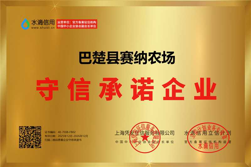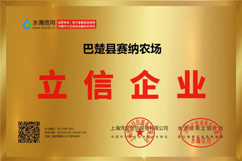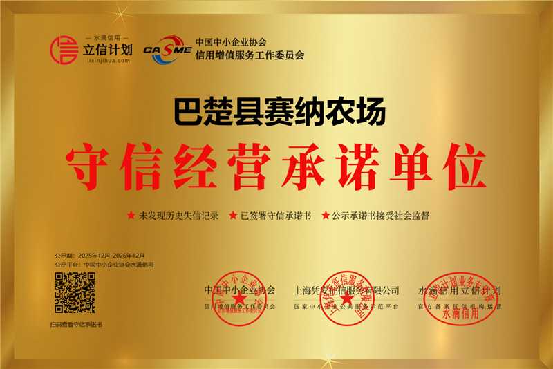巴楚县赛纳农场生产中保证不用激素,少施化肥,多施有机肥。巴楚县赛纳农场以“顾客至上,质量第一”为经营宗旨,利用雄厚的农场管理和技术力量,以灵活的机制,可靠的质量,合理的价格,在激烈的市场竞争中求发展,抓住市场机遇,拓展更广阔的空间,从而使企业的声誉和品牌在该市场上日盛。农场法人阿巴斯先生自己带头考察和联系喀什、和田、阿克苏、巴州、哈密等地区的农民专业户和农业合作社合作红枣、核桃、甜瓜等农副产品统一管理生产。