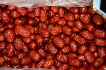 3、枣皮颜色暗红,富有光泽。真正的新疆红枣果皮是暗红色的,很有光泽。如果您买到的枣颜色发黄,发灰,发白,都很可能不是真正的新疆枣。