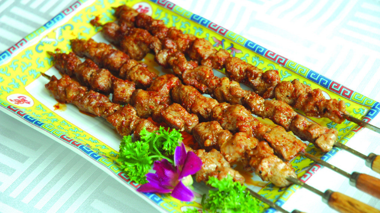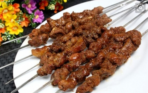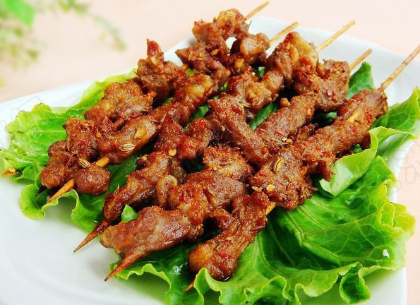 烤羊肉串维吾尔语称之为喀瓦甫。烤羊肉串在吐鲁番是最有名的民族风味小吃。来吐鲁番旅游观光的中外宾客,几乎没有不吃烤羊肉串的。新疆的烤羊肉串可以说是风靡全国的一种小吃,在城乡、街头和集市上随处可见,受到广大群众的青睐。据中国的一些史料记载,古人都有肉的嗜好。西汉出土的马王堆一号墓中,出土了有关饮食的遗策,其中就有牛灸犬肋炙系炙鹿炙鸡炙等烤动物肉的资料,特别是山东诸城县凉台的东汉孙琮享内出土的庖厨图中,其烤肉的工序、工具等与现在新疆的烤肉有着十分密切的联系。现在关内的一些地区也有烤羊肉串,不过正宗的要数新疆的了。新疆无论到哪个地区都有烤羊肉串。在库车有一种叫米特尔喀瓦甫”(1长的羊肉串),那吃起来才过瘾呢。羊肉串除了在无烟煤上烤之外,还有在馕坑里烤的,其味道也同样鲜嫩可口。新疆羊肉串之所以风味独特,原因有两个。一个是,新疆羊的品种优良,这是和新疆水草条件有密切关系。如阿勒泰的大尾羊、巴音布鲁克大届羊都是品质优上的肉用羊,另一个是,新疆烤羊肉串选用了特殊的调味品一孜然。这两个得天独厚的条件,其它地区是不具备的。